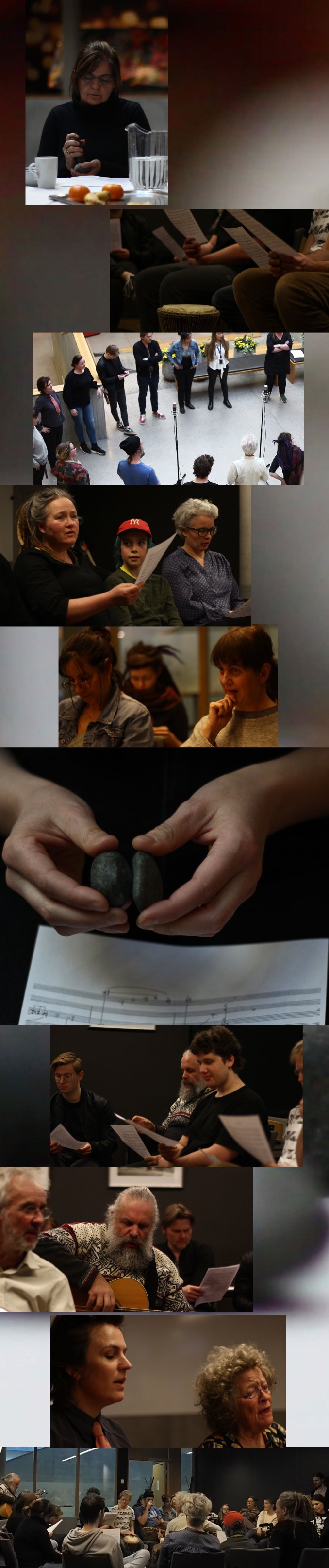 I dag er dagen for latter. Latter ved bordet da vi sang om egg og bacon, latter når vi prøver så godt vi kan å forstå om vi er alter, basser, sopraner eller, og latter når noen synger for seg selv i clusteret. Slik latter som bare kan komme når vi er sammen med noen vi er trygge sammen med. I hvert fall er det slik for meg. Som i alle grupper er det også de som er litt skremt av sangen, eller som ikke synger, eller som stikker og leker. Deres tid er en annen, ved biotopen, ved tegningen eller ved måltidet. Noen som ikke er med oss lengre i det hele tatt er den største og mest vitale morildkulturen. Tony meddeler at vannet er lukket av karet som han flyttet dem over i. Det er uendelig trist, de har druknet, i luft. Nå er de ikke mer. De to mindre kulturene kan kanskje ta en plass i prosjektet, men prosjektet har tatt livet av noe, og det føles vanskelig. Trenger prosjektet å gå på bekostning av annet liv? Eller trenger samfunnsprosjektet å gå på bekostning av andre levende vesener? Store spørsmål, med svar i luften. Kanskje finner vi noen svar på sameksistens i dette prosjektet.