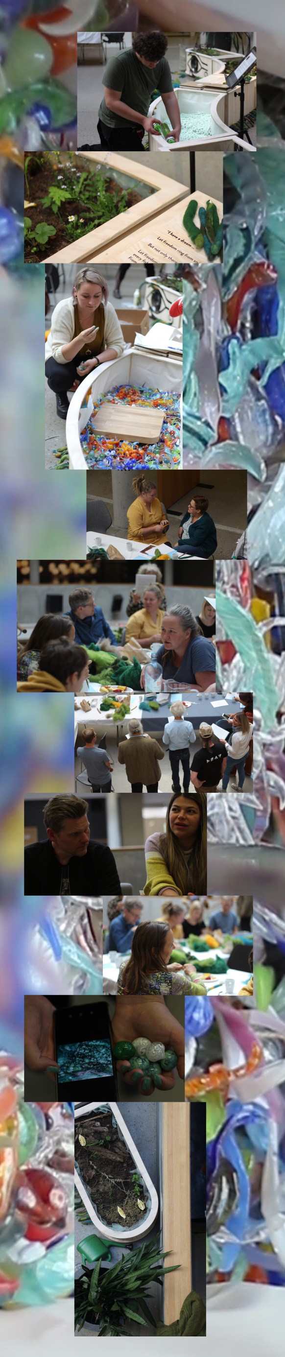 Jeg står i kø for å komme inn til Kristiansand. Her er jeg sammen med mange andre mennesker, adskilt med metall og eksos. Vi er sammen på en måte. Sammen om køen, om å ville komme frem til et sted. Eller kanskje noen syns det er fint å sitte her. Høre på radioen, spotify eller musikk nedlastet til en gammel Mp3 spiller. Det kan være et slags rom, slik som Togetherness er et rom i Rådhuset to onsdager i måneden. Da jeg intervjuer to av oss denne onsdagen snakker vi om at det blir rart når Togetherness ikke er mer, men det vi snakker om er kanskje, hvis det er lov å håper, bare det fysiske rommet som prosjektet skaper. Jeg kommer til å bære prosjektet med meg videre også etter det er avsluttet. I form av nye tanker, måter å se verden på, kunnskaper og delte minner med mennesker jeg har blitt kjent med. Og musikk jeg har fått være med å skape. Biotopen er nok den jeg har blitt minst kjent med, det har ikke vært så lett å leke med den med kamera i hendene. Kanskje noen andre har et større forhold til den, det skulle jeg gjerne visst om. Den er mangslungen nå, med vann, glass, jord, eiketrær, paprikaplanter, bøker, mose, tovede bein, øyer og øyevipper. Og fluer. Jeg hadde en liten flue med meg under hele Togetherness denne onsdagen. Kanskje er jeg likevel i befatning med den utvidede Biotopen.
